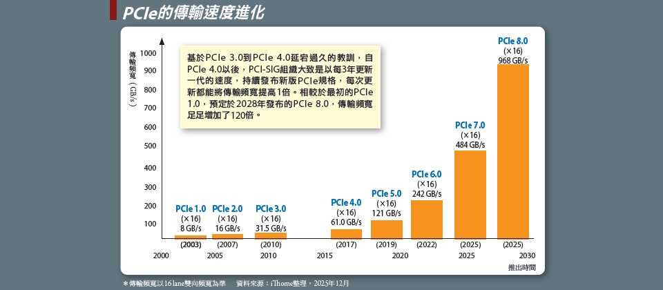 *傳輸頻寬以16 lane雙向頻寬為準 資料來源:iThome整理,2025年12月