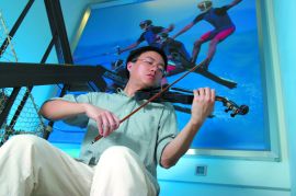 他學過幾種樂器,小時後學過鋼琴,只是不耐久坐在鋼琴前面,而只短暫地學了一兩年。而小提琴對他而言,卻完全是個意外,他獨立在日本札幌大通公園散步,因緣際會聽到兩位路人的街頭演奏,讓他瞭解小提琴有著能高度引起共鳴的魔力。雖然技巧還未能登大雅之堂,他還是固定每天至少會練習個數十分鐘。他開玩笑地說著,如果年紀大了沒工作做,在外流浪說不定還可以靠這混口飯吃,因為他現在就算上班,也會躲在會議室裡拉小提琴。