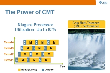 2002年六月,Sun宣佈併購Afara Websystem,取得該公司針對網站伺服器應用的多核心處理器設計。2003年八月的IEEE Hot Chips 15論壇,Sun闡述CMT(Chip Multi-Threading),藉由多核心處理器來改善多執行緒應用程式的執行效能,2004年二月進一步提出「Throughput Computing」概念,以提升網路處理的效能為思考核心,整合多核心處理器、多執行緒架構、以及更有效率的TCP/IP通訊協定堆疊,設計出兼顧高效能、低耗電及低成本的處理器,在眾多伺服器廠商中顯得獨樹一幟。