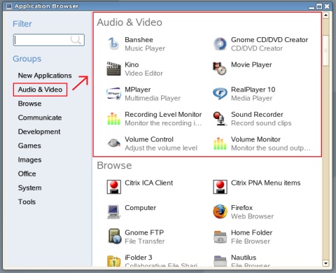 至於F-Spot相片管理工具,像是Windows上常用的ACDSee圖片管理工具,提供圖片預覽與編輯的功能,其特色是採用拉桿方式放大或縮小圖片。Beagle桌面搜索工具可直接在工具群組上輸入關鍵字,所有搜尋結果會分類排序,例如文書檔、網址或應用程式等,以利直覺方式快速瀏覽結果。Tomboy則是注釋軟體,類似電腦用的便利貼小工具,會以醒目的黃色常駐在桌面的狀態列上,提醒使用者注意待辦事項。