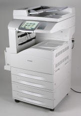 列印、影印、傳真,與掃描功能,早已是雷射多功能事務機的標準配備,但大多屬於功能簡單、列印速度較慢、尺寸也較小的A4機種,亦無法加裝堆疊器、裝訂器等完稿設備;而Lexmark X854e屬於大型的黑白雷射多功能事務機,具有A4每分鐘55頁以上的列印效能,並內建A3掃描平臺與75頁自動進紙器,能列印與影印A3文件,且能選配裝訂器、打孔機,以及堆疊器等完稿裝置,列印效能與完稿能力媲美大型影印機。