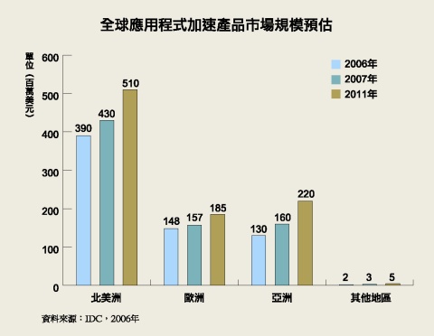 今年可以說是此類產品如雨後春筍般冒出的一年,目前市面上有不少廠商都推出了此類產品,如Packeteer、Cisco、Bluecoat、Nortel、F5、Citrix、Juniper、Riverbed、Exinda、Expand、Certeon等。不過在臺灣的應用仍屬少數,主要還是國際據點眾多的企業其需求較大。根據調查機構IDC的統計,到2011年,此類產品在全球的年收將由現在的6億7千萬美元,躍升到9億2千萬美元,是未來企業在解決網路頻寬問題上的新解決方案。應用程式加速產品是怎麼做到的?