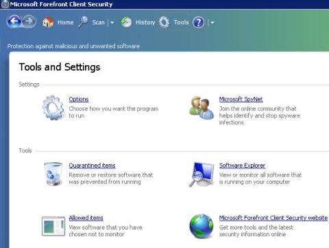 SpyNet也是用戶端管理介面所提供的一項新功能,這是微軟所設立的病毒社群,目的是透過網路回報樣本提供微軟人員分析並製作疫苗,如同大多數的防毒軟體,這項功能可隨使用者個人的需求決定是否啟用,而FCS的管理者也可以透過主控臺設定,決定是否讓用戶端電腦於未知病毒發現的同時,將此樣本提供給微軟研究。