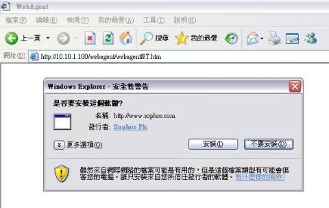 透過IE連接http://10.10.1.100/webagent,下載代理程式的Active X元件。