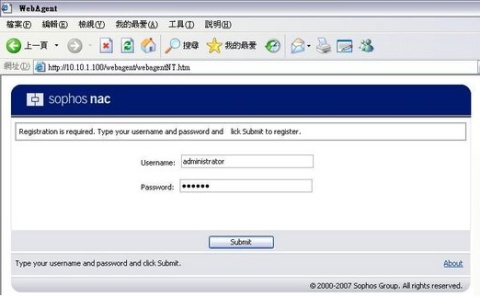 Sophos NAC Advanced一共提供2種不同形式的代理程式供用戶選擇安裝,其中一種是MSI封裝檔,至於另外一種則是透過網頁下載的Active X元件(又稱為Web Agent)。