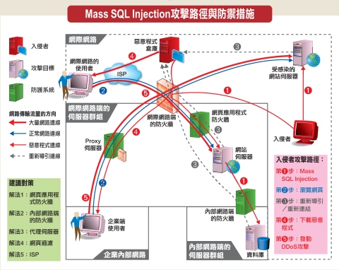 從圖中我們可以看出來:對伺服器的攻擊屬於SQL Injection類型,至於對使用者電腦入侵則是使用網路釣魚(Phishing)手法。