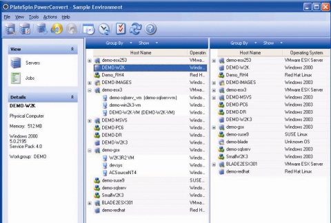不過隨著虛擬環境的日漸普及,也吸引了一些廠商投入了專門的P2V遷移工具開發,如PlateSpin PowerConvert、VizonCore Vconverter等。這些P2V資料遷移工具功能與VMware Converter類似,同樣都可一步到位完成P2V轉換,而且相關的設定與作業執行監控機制更完善,因此轉換成功率更高,出問題時也更容易判斷問題點所在。當然更便利相對的也需付出代價,這些工具都必須付費購買才能取得。