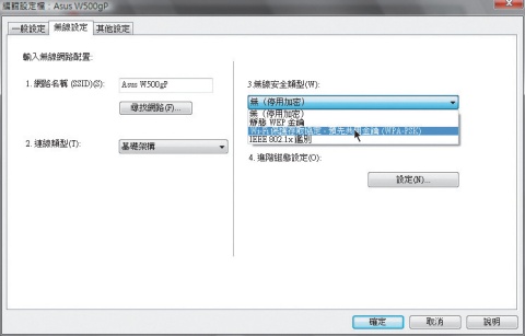 由於無線網路標準一直演進,所以金鑰也演化出非常多的標準,WEP、WPA、WPA2、TKIP......。如果問我,我的建議是,找一個新的標準,然後要注意兩端都得「設對類型」。目前我操作Vista的經驗是,它會自動選擇你AP設定的金鑰類型,但是,如果你用的是「專屬的設定程式」有時就得要確認金鑰類型,不設定正常你還不能使用AP呢!