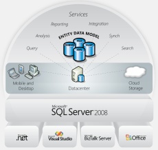 因應SQL Server 2008的上市,在開發方面.NET Framework 3.5及Visual Studio 2008也在8月同步釋出中文版Service Pack 1,包含傳聞已久的微軟ORM(Object Relational Mapping)解決方案──ADO.NET Entity Framework,而LINQ(Language Integrated Query)也將增加支援存取Entity Framework物件的LINQ To Entities。