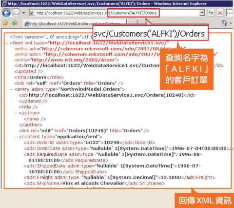ADO.NET Data Services支援REST ADO.NET Entity Framework