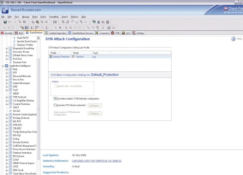 能防護網路入侵行為SmartDefense是VPN-1 VE內建的IPS機制,可針對進出防火牆的網路連線進行狀態檢測。 |