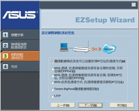 ![]() RT-N11的安裝光碟內包含EZSetup工具,提供圖像式的安裝流程說明,只要依實際環境點選,就能完成建置。 |