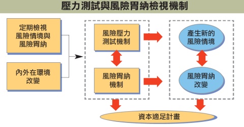 楊恆華表示,玉山銀行的風險胃納機制,之所以選擇壓力測試的做法,主要是因為壓力測試是最符合直覺的ㄧ種做法,例如:這一波金融海嘯襲擊全球,對於玉山銀行是否會造成衝擊,就可以透過情境模擬,以及結合專家的經驗推估,針對各項業務進行壓力測試。如果壓力測試的結果,顯示已經達到風險胃納的底限,就要進行相關策略調整。