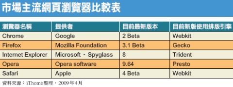 在近年最傳奇的例子就是Firefox,它提供方便的功能與介面、較為安全的網頁瀏覽環境,普及率逐漸進逼IE的市場,這項挑戰無疑是成功的。時序進入2009年,瀏覽器大戰卻依舊打得火熱,尤其在2008下半年,就連Google也加入了戰局。