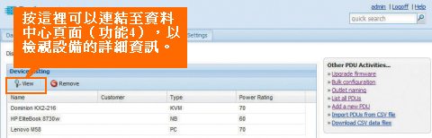 如果要在管理頁面中直接檢視PDU的供電狀況,我們可以透過這套管理軟體的PDU連結功能。