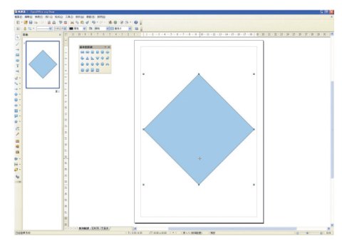 2. 從左邊的常用工具中,直接找出菱形。我自己有把「基本的形狀」工具列拖曳到畫布旁邊,你可以試試看。畫菱形時,可以按著Ctrl、Alt或Shift,這些鍵通常會有不同的作用,方便你做出特定的效果。