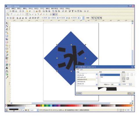假設要畫個藍色的菱形圖樣,裡面打個「冰」字,要怎麼做?
