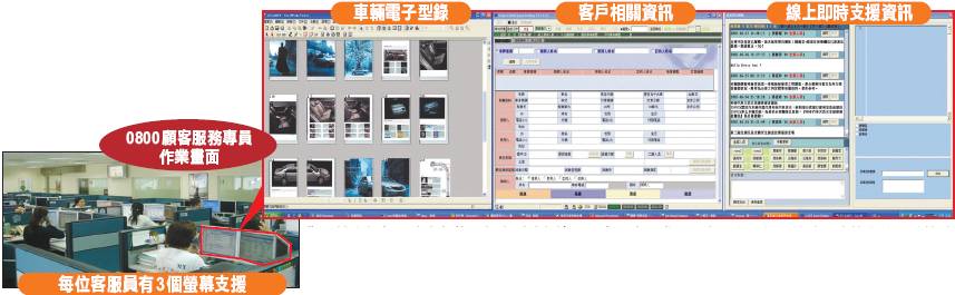 為了讓各個部門的人都能了解客戶的想法,和泰汽車要求資深人員必須假日輪值,直接在第一線接聽0800免付費電話。每位客服專員更由3個螢幕呈現不同的內容,以最短的時間回應客戶。