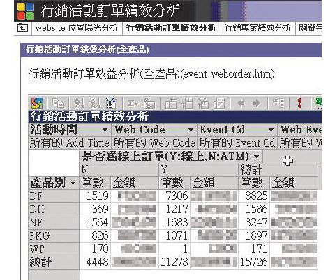 以往易飛網對於OLAP的應用,大多是與上個月或去年同期等歷史資料的分析與比較,但是,最近這一年來卻逐漸演變成即時調整商業策略的工具,除了可以讓相關人員隨時進行各種交叉分析,進而找出易飛網的利基點與經營弱勢,也可以根據分析結果,即時調整產品線內容或作業流程。