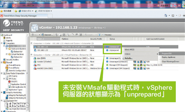 透過安裝於iThome測試環境的趨勢Deep Security 7.0,我們將實際示範如何讓產品與VMsafe進行介接,在虛擬環境中提供防護服務。