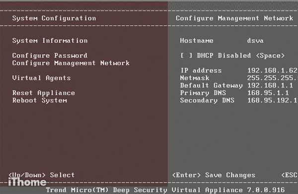 Deep Security Virtual Appliance預設透過DHCP取得網路設定,或者採固定方式配置。
