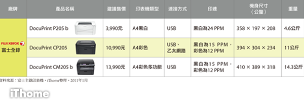 這3臺產品在定位上,屬於較低階的產品,像P205 b與CM205 b僅有USB連接埠的設計,而CP205具有USB與乙太網路連接埠,適合放置於個人辦公桌或小空間使用。綜合來說,網路連線能力是比較可惜之處,支援性較低。