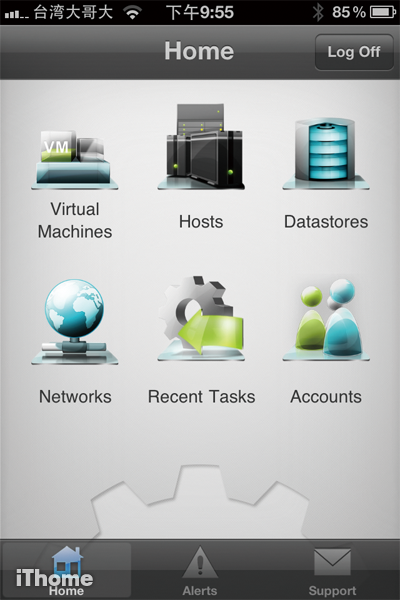 OPS1的主要功能是監控vSphere/ESXi伺服器,及虛擬機器的狀態,除了控制開、關機的動作之外,本身不具備修改設定的能力,不過它所提供的訊息相當完整,在連線登入之後,這套軟體會以Virtual Machines、Hosts,及Datastores等6大項目,區分所收集到的資訊,介面的設計十分圖形化,以便提供用戶直覺化的操作,對於常使用行動裝置管理IT的人來說,算是一套實用很高的工具軟體。