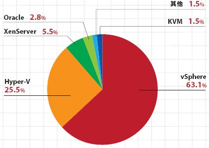 今年虛擬化平臺的採用平臺與去年相比差異不大,VMware採用比例仍舊攻佔第一,高達6成(63.1%)企業採用vSphere。微軟Hyper-V位居第二。